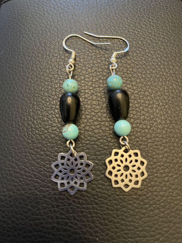 Boucles d'oreilles en Agate noire et Turquoise en 6 mm