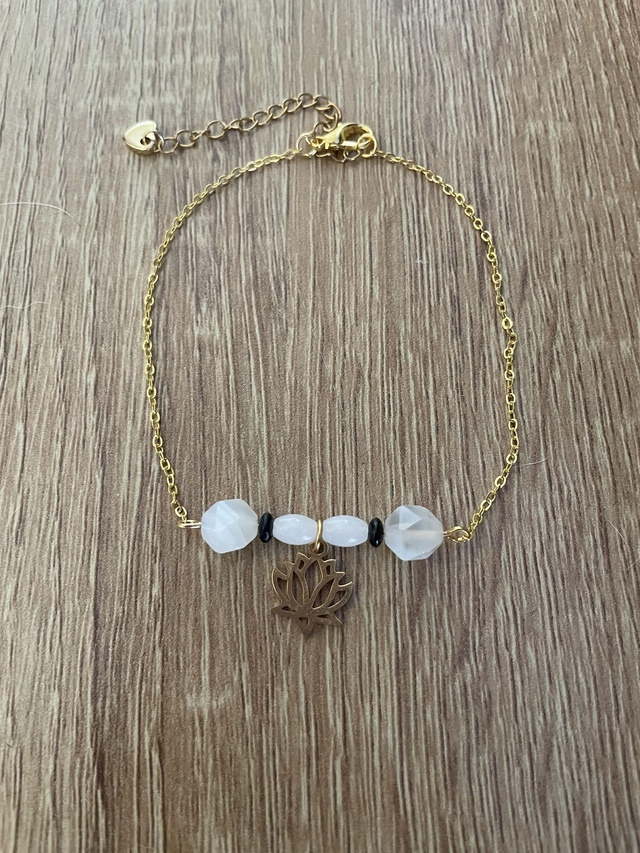 Chaîne de cheville Pierre de lune 8 mm, Jade blanc et Agate noire