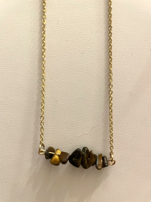 Collier en chips Oeil de tigre et acier inoxydable doré