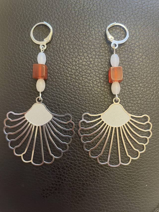 Boucles d'oreilles en Agate cornaline rouge et Jade blanc